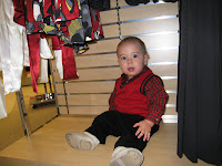 It's obligatory...he's already met the Easter Bunny, so we just had to introduce Brady to Santa and get his picture taken. He did fine, just didn't feel like smiling. He was much more interested in the playground that is the mall! I'm not talking about the kiddie play-stations they have in the mall. I'm talking about the actual mall- an awesome place to walk...and walk...and walk; to play on clothes racks; to touch all kinds of fabrics and textures; to try and climb the displays. Brady had so much fun! I know exactly where we're going when Brady somehow gets bored with the bazillion toys he has at home. Meemaw, Brady, and I were all tired by the time we left. :)