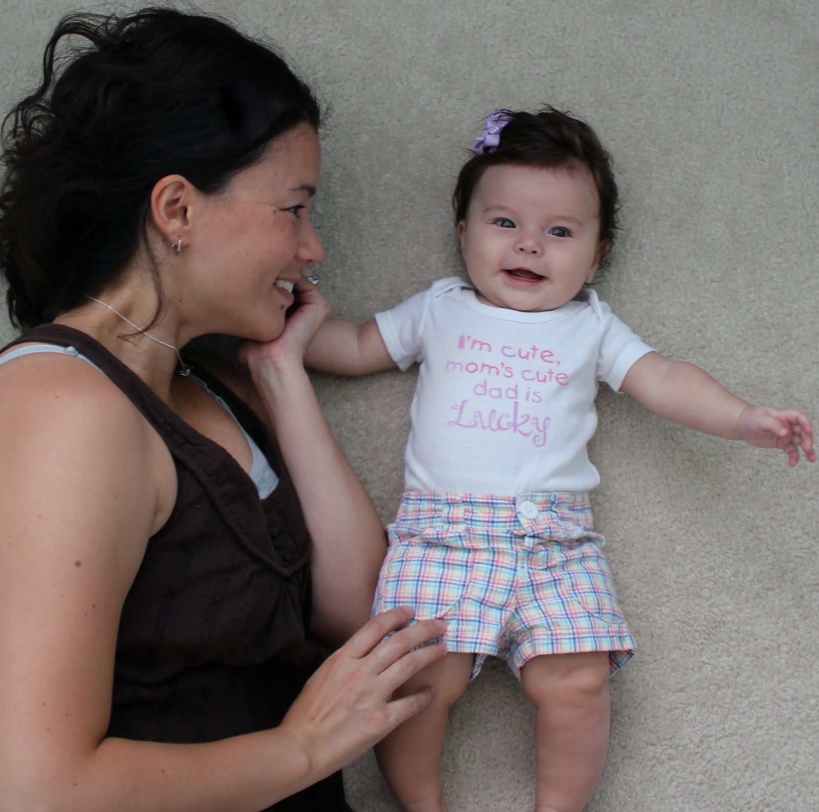 Thanks go to the Thaivalappils for proving to me that little girl clothes can have cute and funny sayings too! This onesie is from the Maya collection. It says, "I'm cute, Mom's cute, Dad is lucky." :)